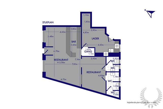 En meget velindrettet forretning med god bar, fin udeservering, flot interiør, god lagerkælder og fine gæstefaciliteter.